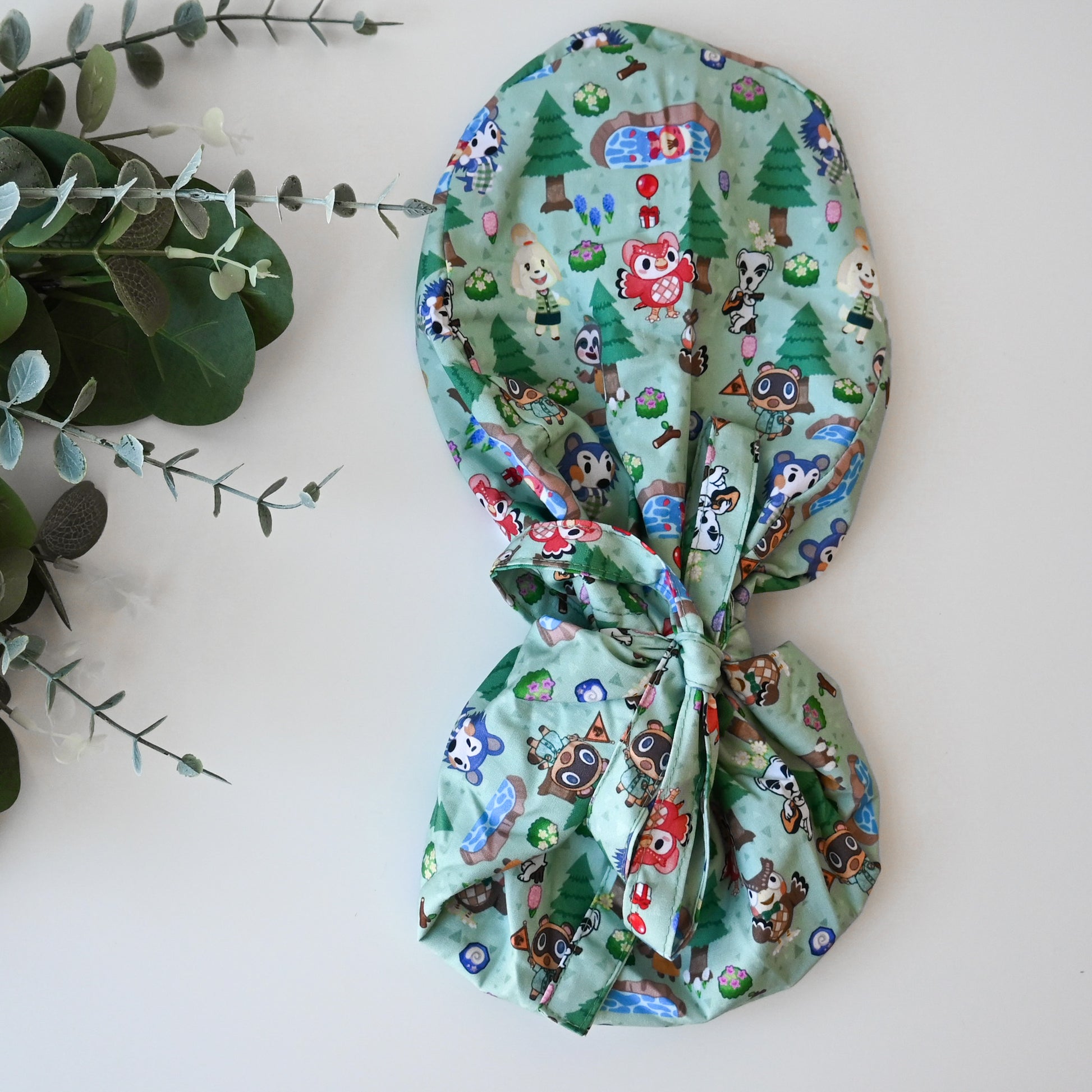 ANIMAL CROSSING - CHARACTERS AND OBJECTS SATIN LINED PONYTAIL SCRUB CAP