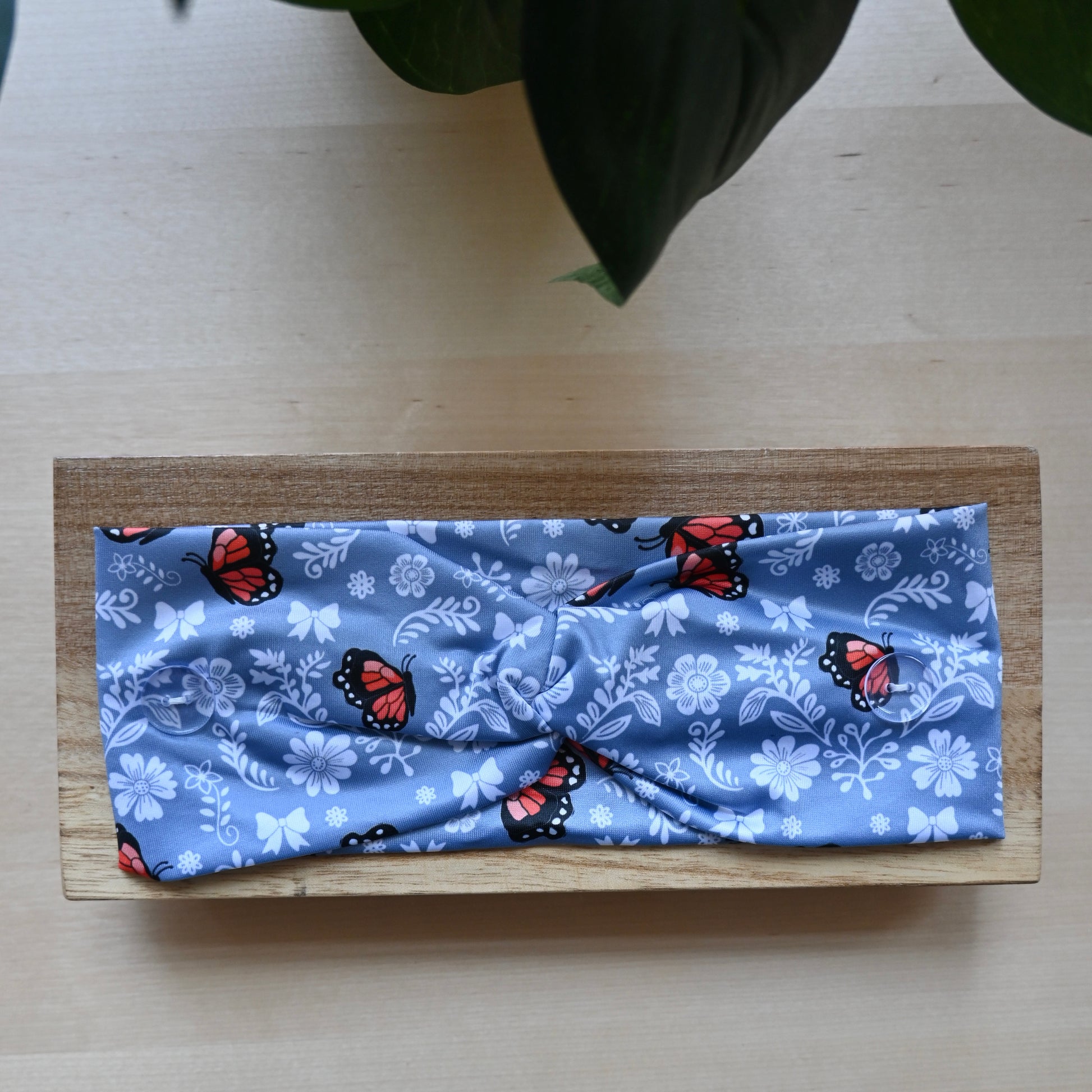 This soft, stretchy twisted headband features two side buttons for easy mask attachment. It's non-slip, breathable, machine washable, and perfect for all-day comfort. Handmade with care!