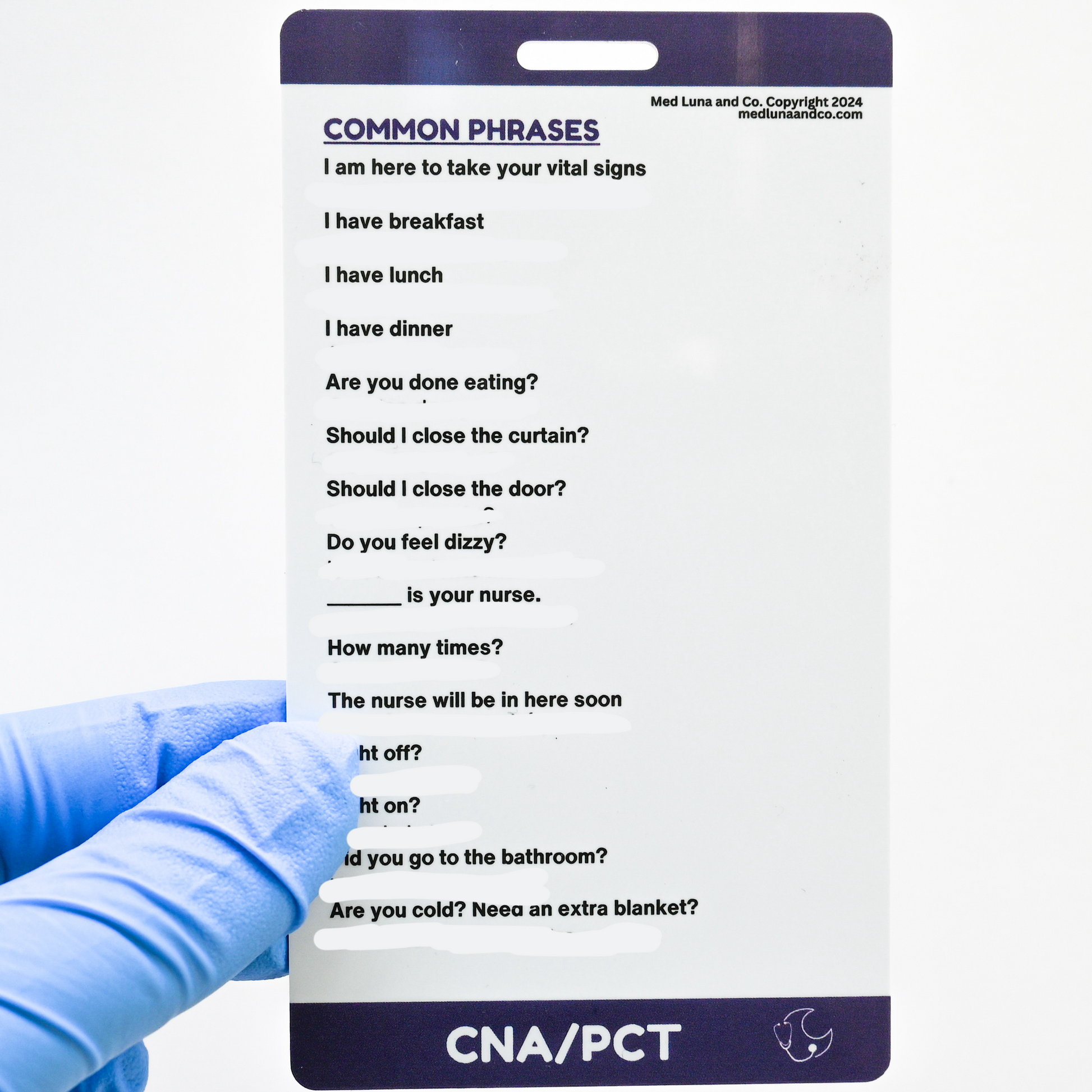 Our Medical Spanish Translation Badge provides quick access to key medical phrases in English and Spanish. Lightweight, durable, and easy to attach, it's perfect for healthcare professionals looking to improve patient communication. Easy to attach onto ID or lanyard.