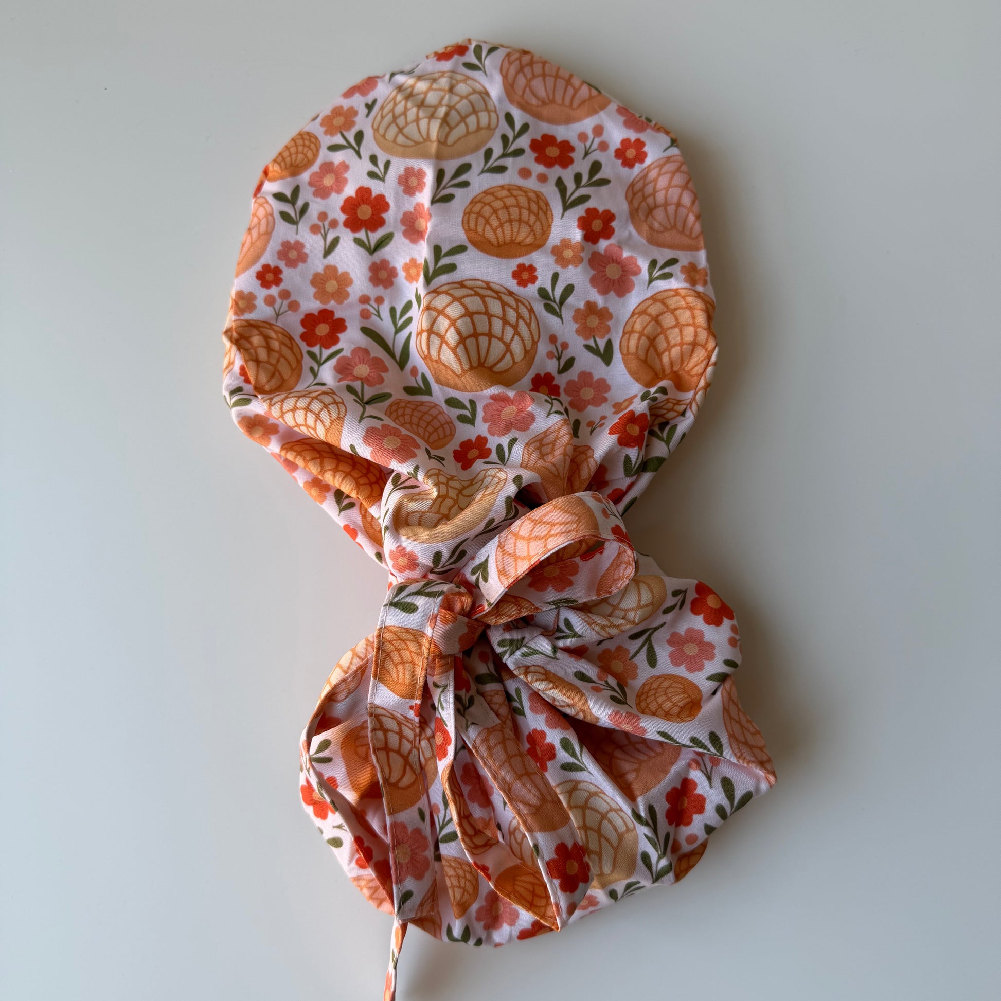 CONCHAS WITH FLOWERS SATIN LINED PONYTAIL SCRUB CAP