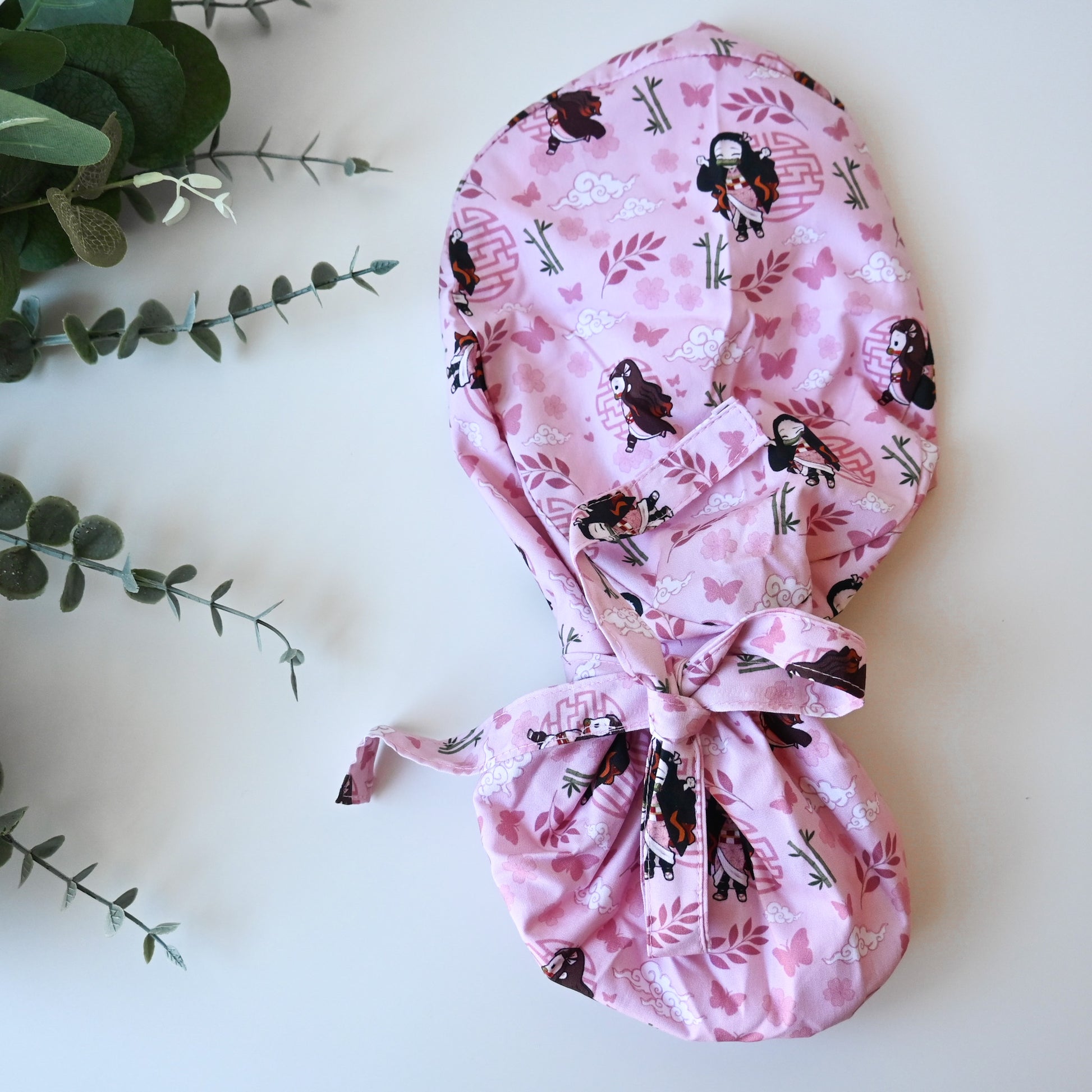 DEMON SLAYER - NEZUKO KAMADO SATIN LINED PONYTAIL SCRUB CAP