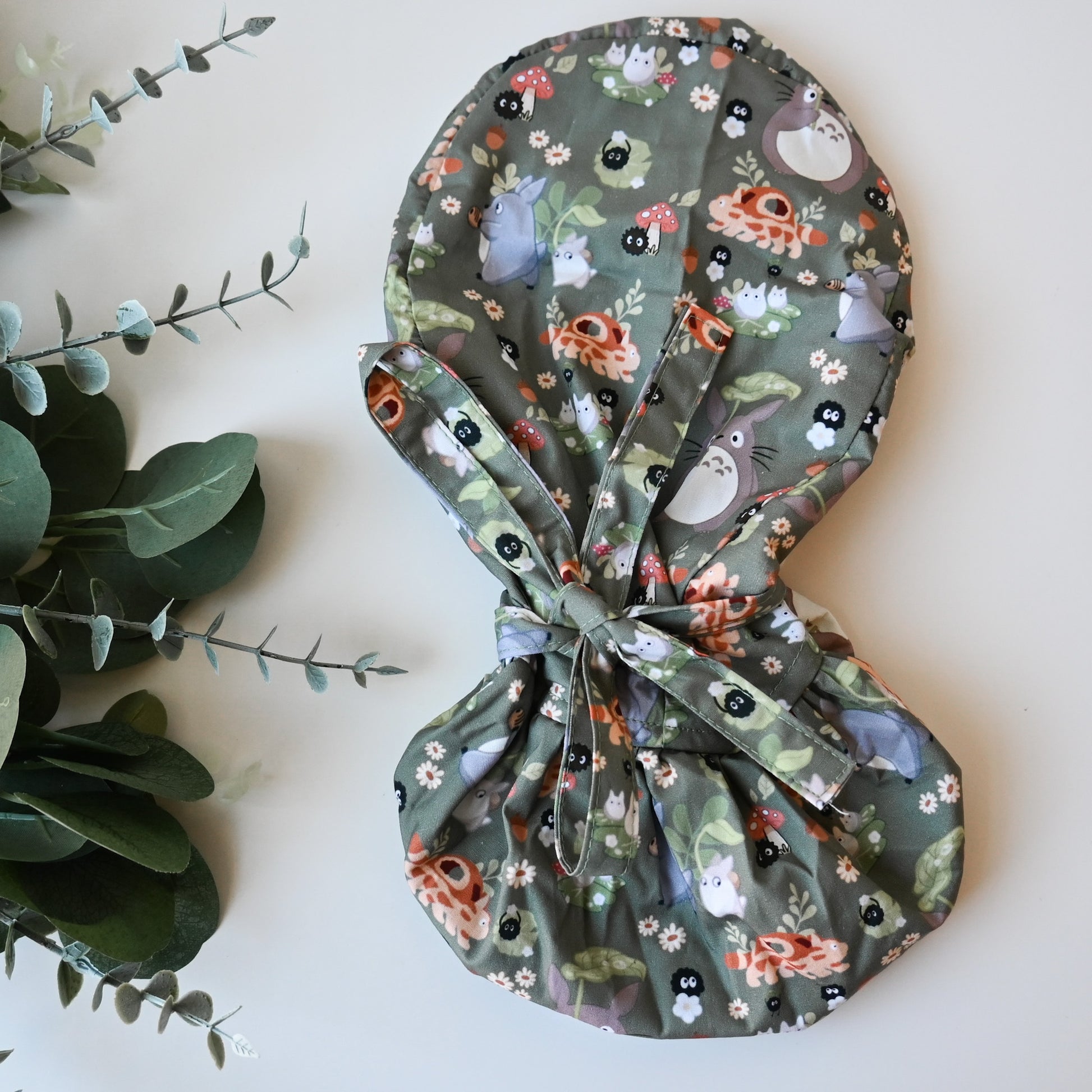 MY NEIGHBOR TOTORO - GREEN TOTORO WITH FRIENDS SATIN LINED PONYTAIL SCRUB CAP