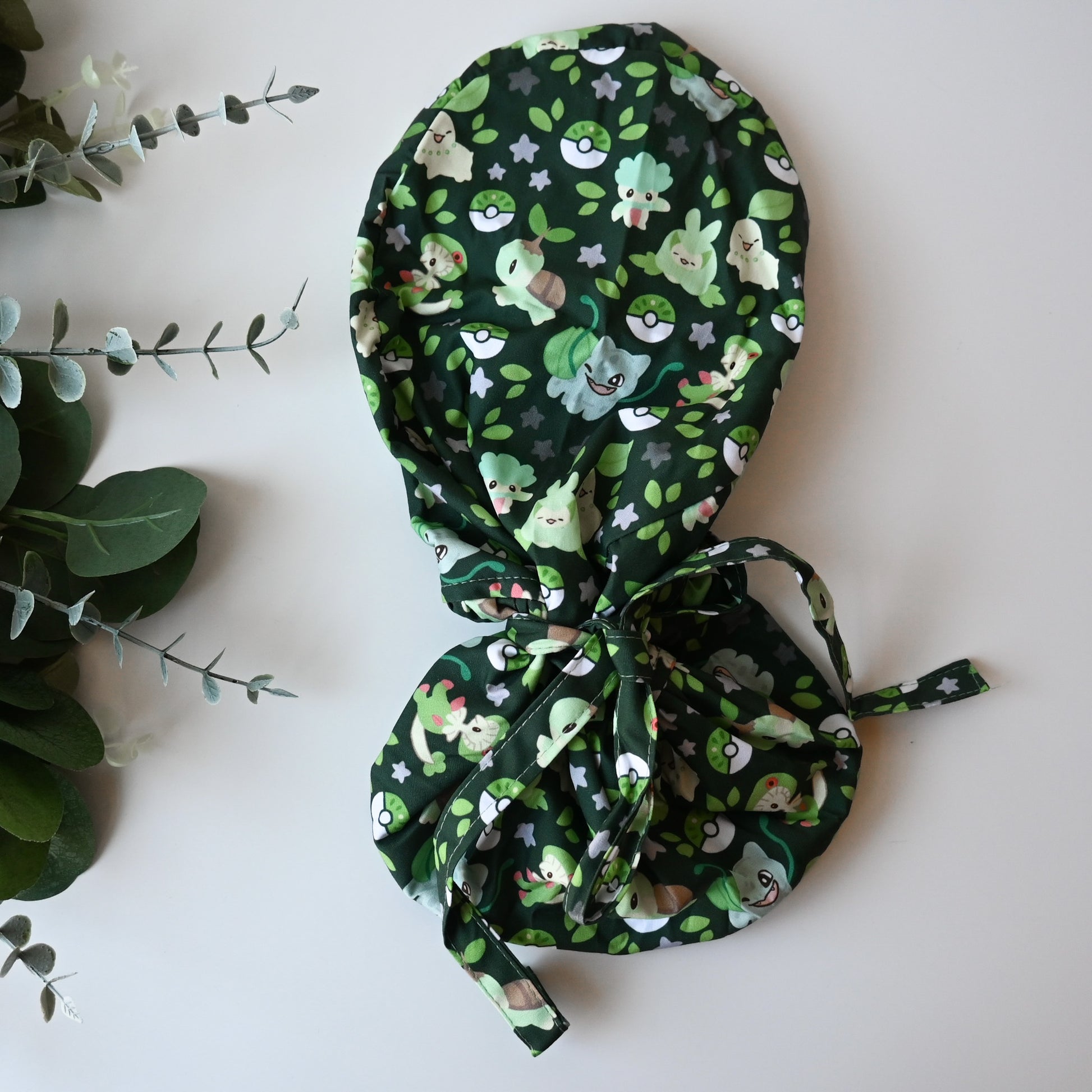 POKEMON - GRASS TYPE POKEMON SATIN LINED PONYTAIL SCRUB CAP