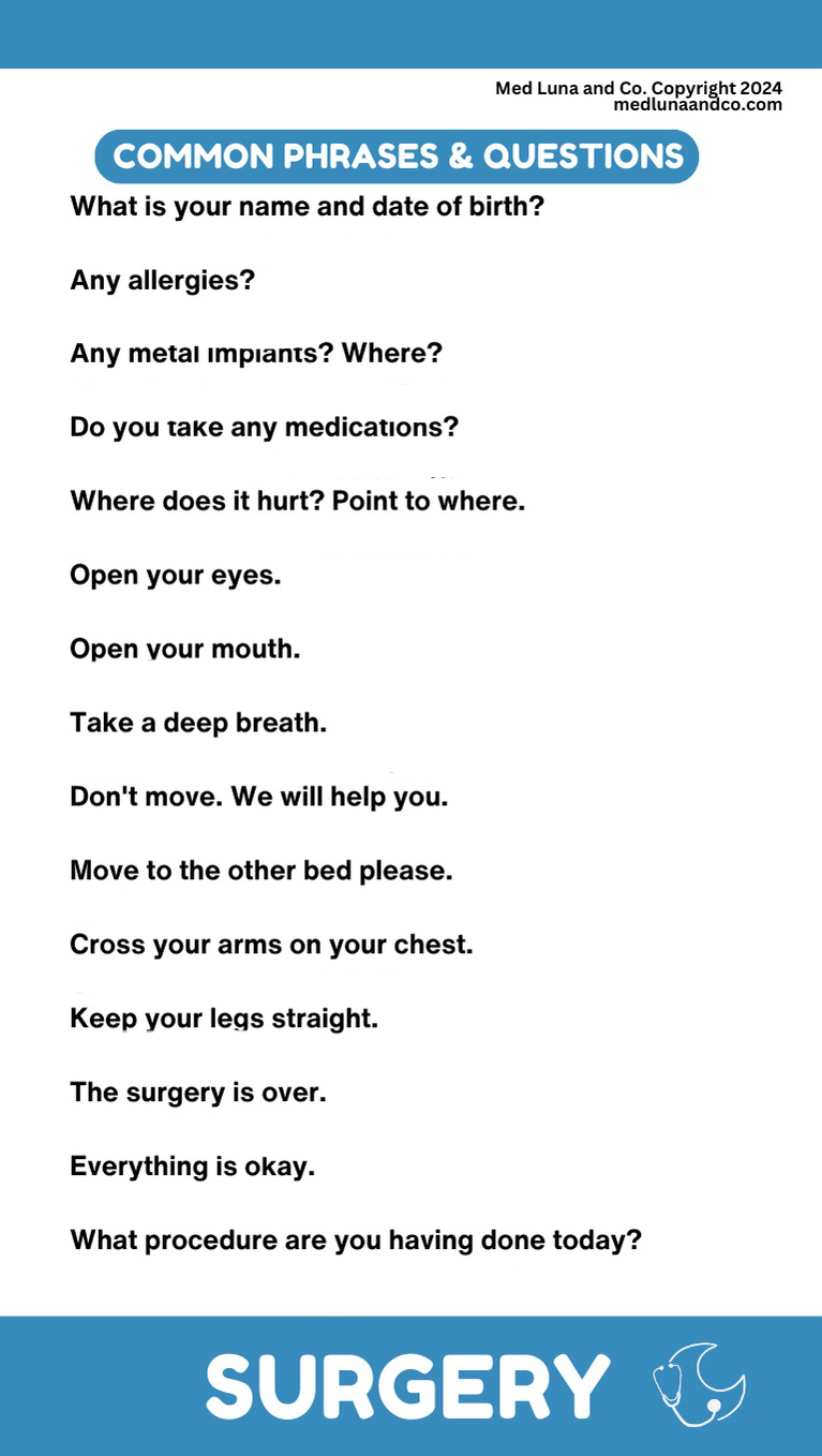 We are not responsible for any consequences arising from the use of this book in a manner that conflicts with clinic or hospital policies. Healthcare professionals should always follow their institution's guidelines and protocols. Any medical decisions must be made in consultation with qualified healthcare providers. The authors and publishers of this book disclaim any liability for adverse outcomes resulting from the use of this material. Always consult with a certified interpreter or language services when necessary to ensure clear and accurate communication.