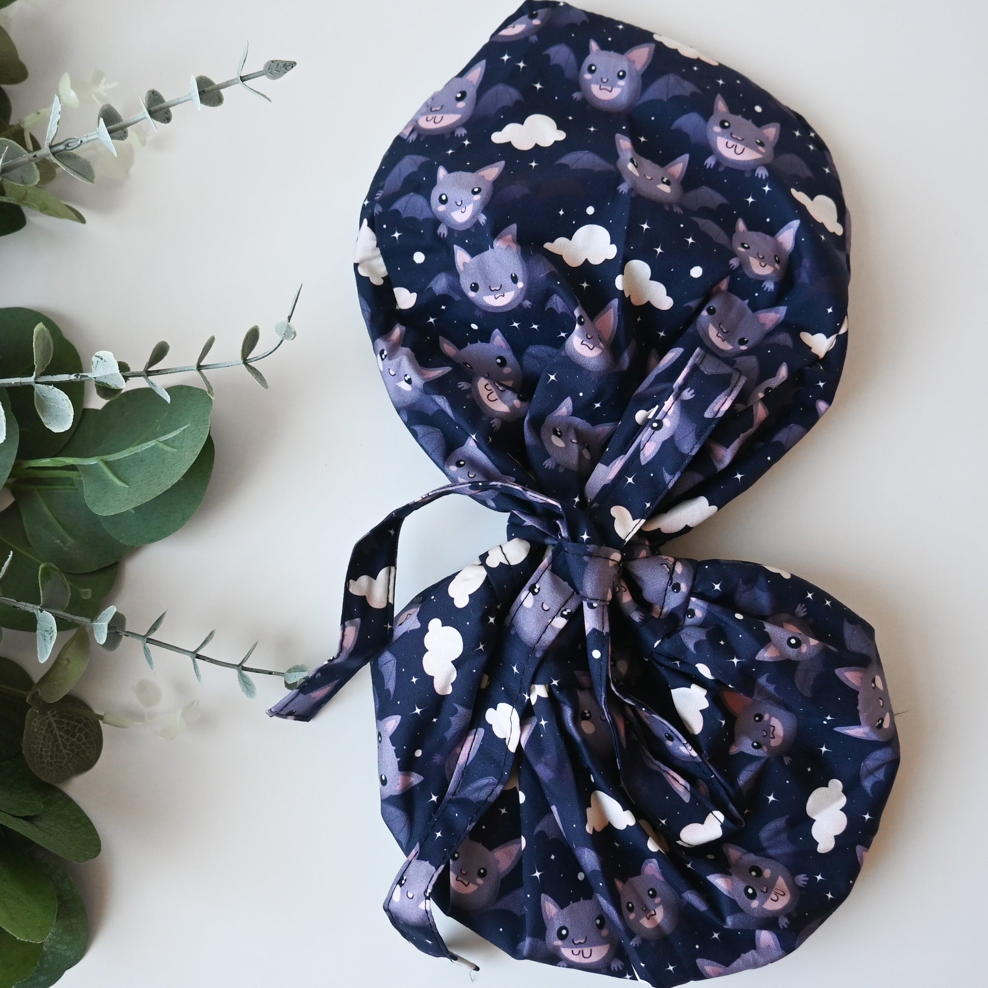 SPOOKY BAT SATIN LINED PONYTAIL SCRUB CAP