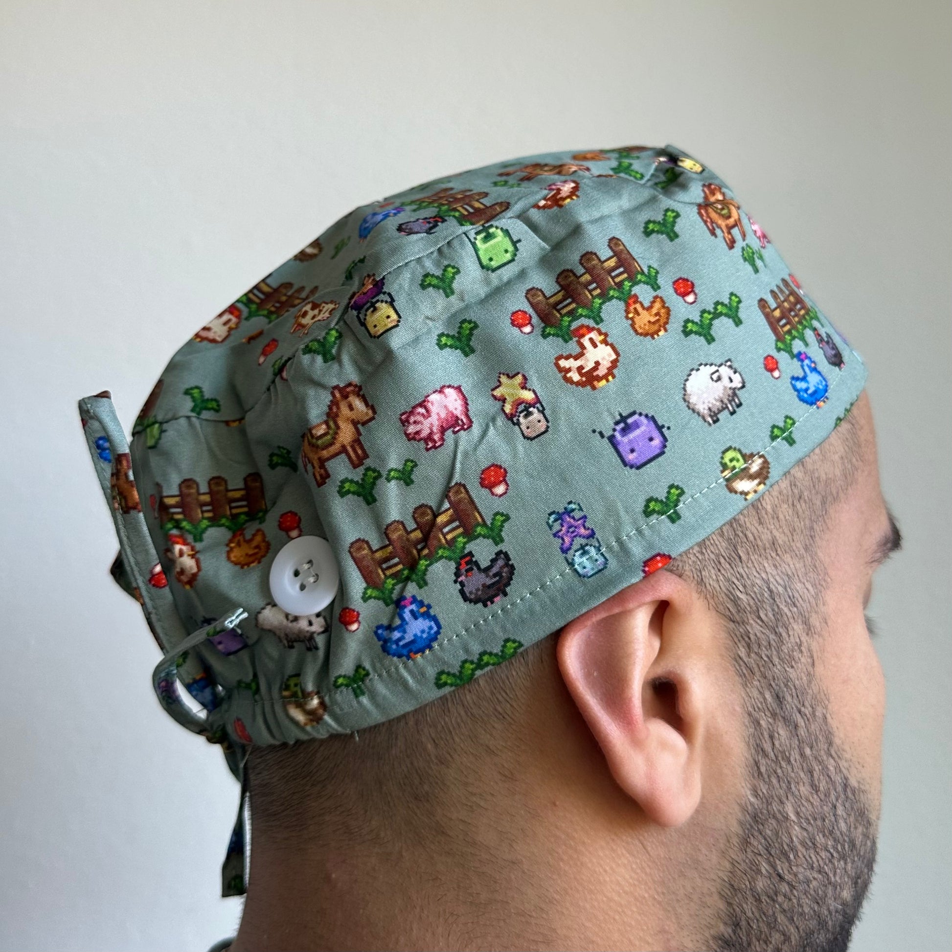 STARDEW VALLEY - GREEN THEMED SATIN LINED REGULAR SCRUB CAP